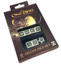 Seven precious and beautifully detailed deluxe dice for your One Ring Roleplaying Game adventures. This set contains six 6-sided success dice and one 12-sided feat die, crafted by the dice geniuses at Q Workshop. Be the envy of all other adventurers at the table — become the Dicebearer!