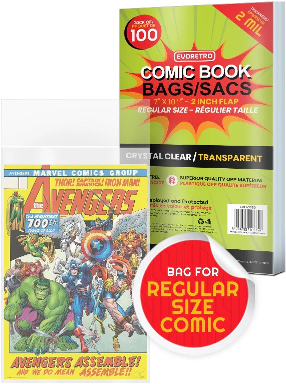 Evoretro - Regular Size Comic Bags (7" X 10.5") - 100CT - Crystal Clear/Transparent is backordered and will ship as soon as it is back in stock.