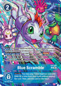 [Main] 1 of your blue Digimon may digivolve into a blue Digimon card in the hand with the digivolution cost reduced by 3. Then, place this card in the battle area. [Start of Your Turn] If your opponent has a Digimon, [Delay]. • Return 1 blue Digimon card from your trash to the top of the deck. Then, if you don't have a Digimon, you may play 1 blue Digimon card with 2000 DP or less from your trash without paying the cost.