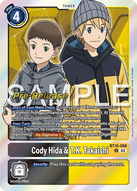 Very low stock (1 unit)$8.50Unit price /UnavailableCody Hida & T.K. Takaishi [BT16-088] [Beginning Observer Pre-Release Promos]