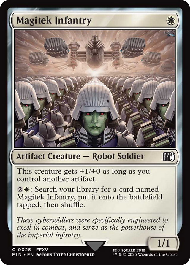 {2}{W}: Search your library for a card named Magitek Infantry, put it onto the battlefield tapped, then shuffle.