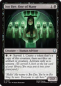 {B}, {T}: Surveil 1. Create a token that's a copy of this creature, then sacrifice an artifact or creature. Activate only as a sorcery. (To surveil 1, look at the top card of your library. You may put it into your graveyard.)