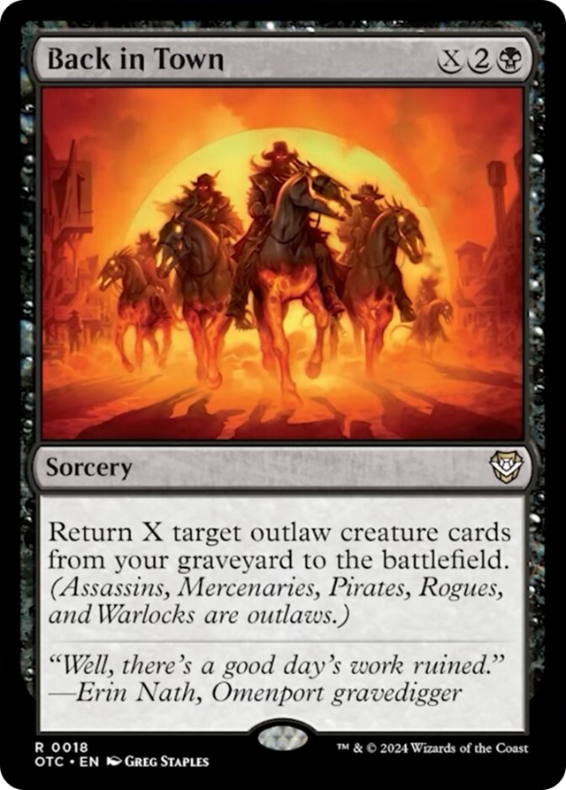 Return X target outlaw creature cards from your graveyard to the battlefield. (Assassins, Mercenaries, Pirates, Rogues, and Warlocks are outlaws.)