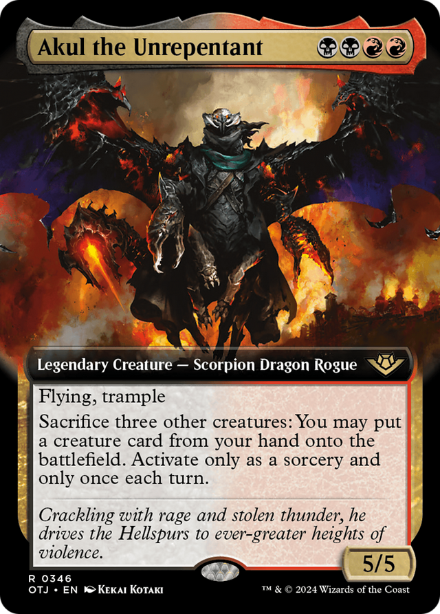 Akul the Unrepentant (Extended Art) [Outlaws of Thunder Junction] - Near Mint is backordered and will ship as soon as it is back in stock.